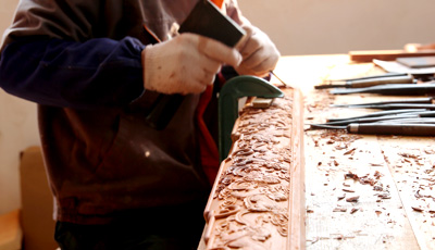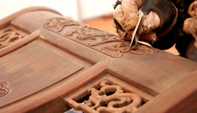流程三雕刻工序 為了讓紅木家具看上去更美觀,在木工工序完成之后一般都會用一些或簡單或復(fù)雜的雕花來進行裝飾,也就是行業(yè)中所說的雕刻紋飾。雕刻紋飾必須在“認榫”完成后進行,因為“認榫”時需要修整,如果先做好雕花再開榫,紋理很難保證雕花部件都在同一平面上,而此時為了保證雕花...