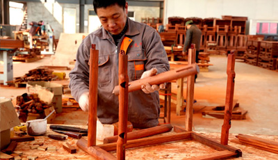 流程二木工工序 板材干燥完成后,就可以進入正式的制作工序了。這一步是紅木家具制作最主要的步驟,也就是紅木家具制作廠家所說的木工工序。